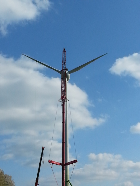 Ein Jahr nach dem Windradabbau sind die Arbeiten 2015 wieder aufgenommen worden. Im März wurde das Loch ausgehoben, sowie das Fundament gegossen. Im April ist das neue Windrad dann aufgebaut worden. Im Mai geht OWI II ans Netz.
